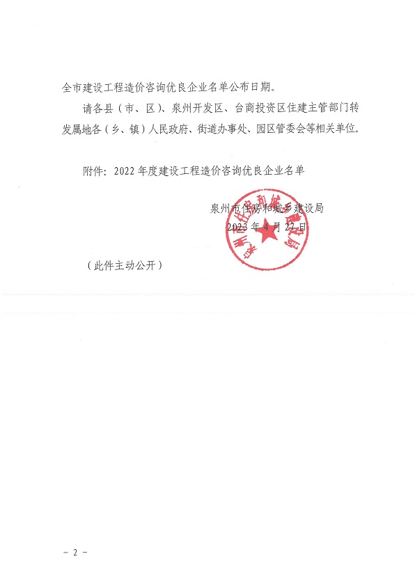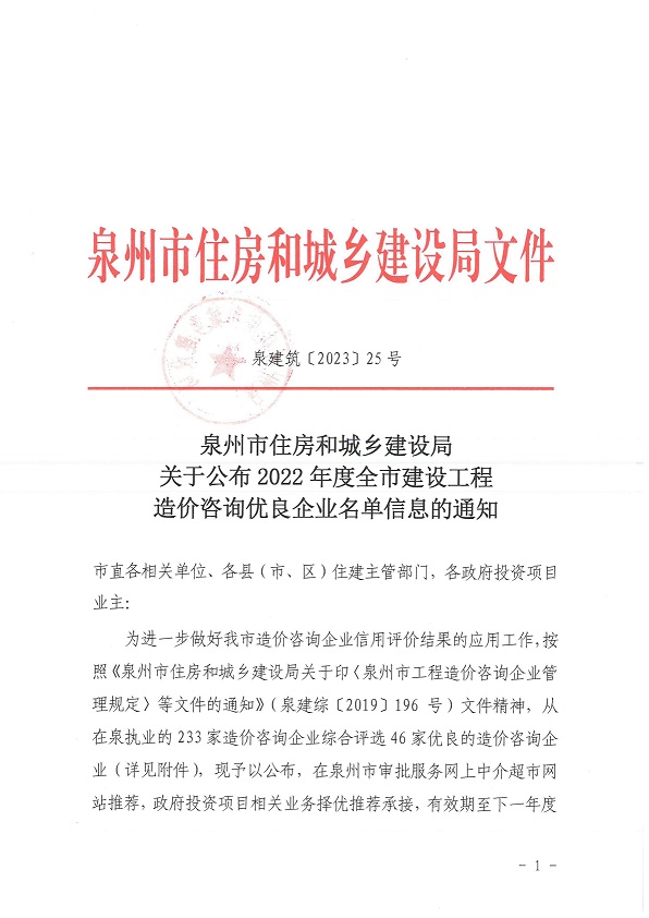 恭喜建融集团获得2022年度建设工程造价咨询优良企业
