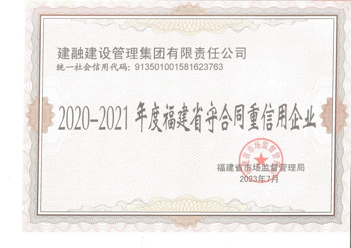 恭喜建融集团荣获“2020—2021年度福建省守合同重信用企业”