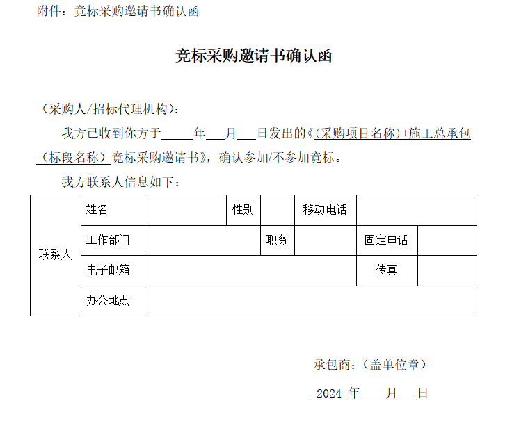 请你单位在收到本邀请书后24小时内明确是否参与本项目竞标采购活动,并将邀请书确认函(见附件)通过电子邮件或传真等方式给予我方答复。